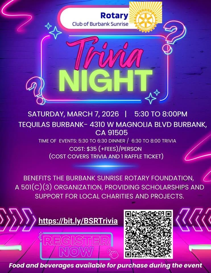 Welcome to the Rotary Club of Burbank Sunrise, a 2021-2022 and 2023-2024 Club of Excellence for Rotary District 5280! We are a non-profit service club actively involved in humanitarian efforts in our community and the world! Come to one of our meetings and see what we are all about. Rotary is a global network that strives to build a world where people unite and take action to create lasting change. Rotary values diversity and celebrates the contributions of people of all backgrounds, regardless of their age, ethnicity, race, color, abilities, religion, socioeconomic status, culture, sex, sexual orientation, and gender identity.